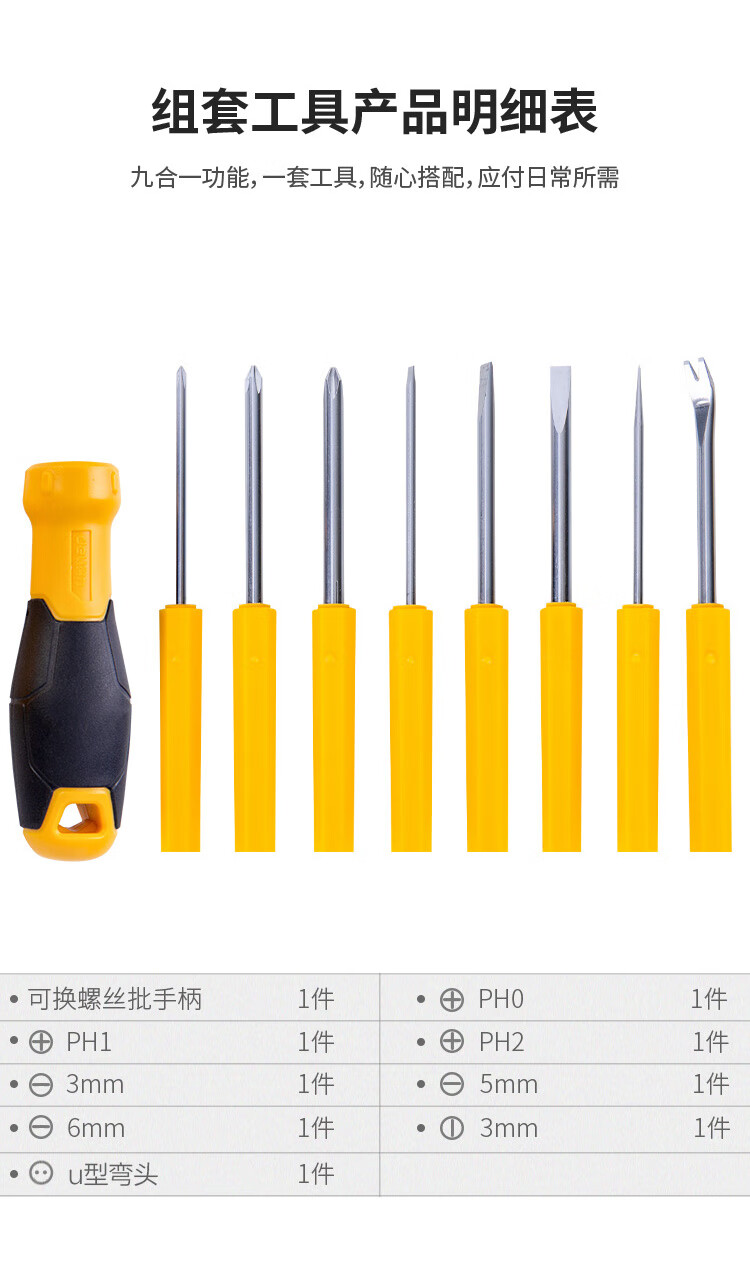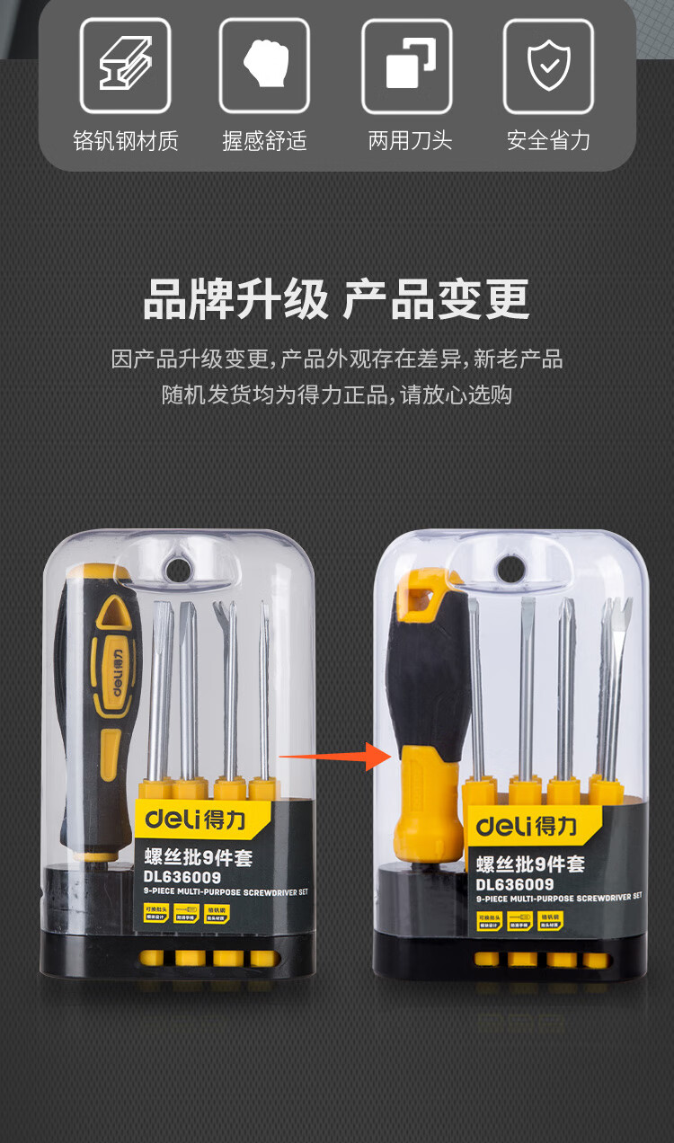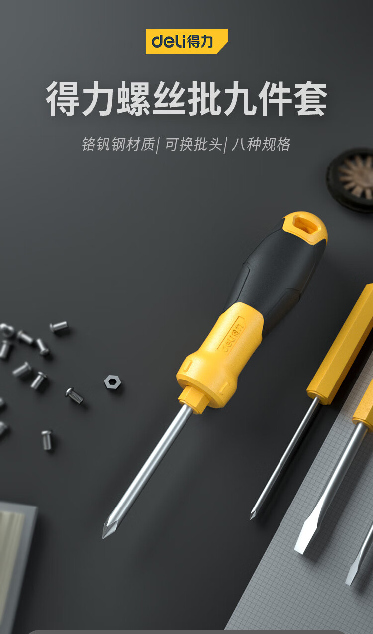 首页 / 手动工具 / 通用手工具 / 紧固类 / 【得力DL636009】得力(deli)多用螺丝批铬钒钢螺丝刀起子改锥组套9件套DL636009