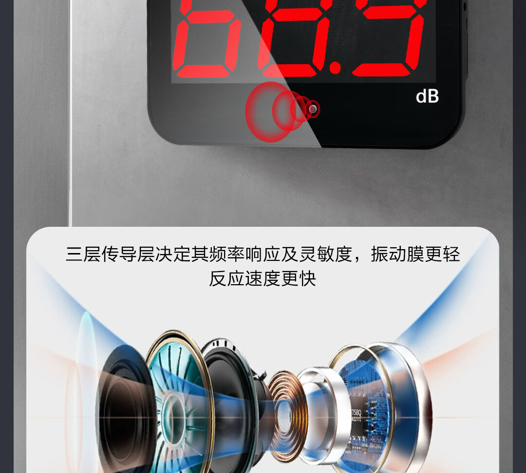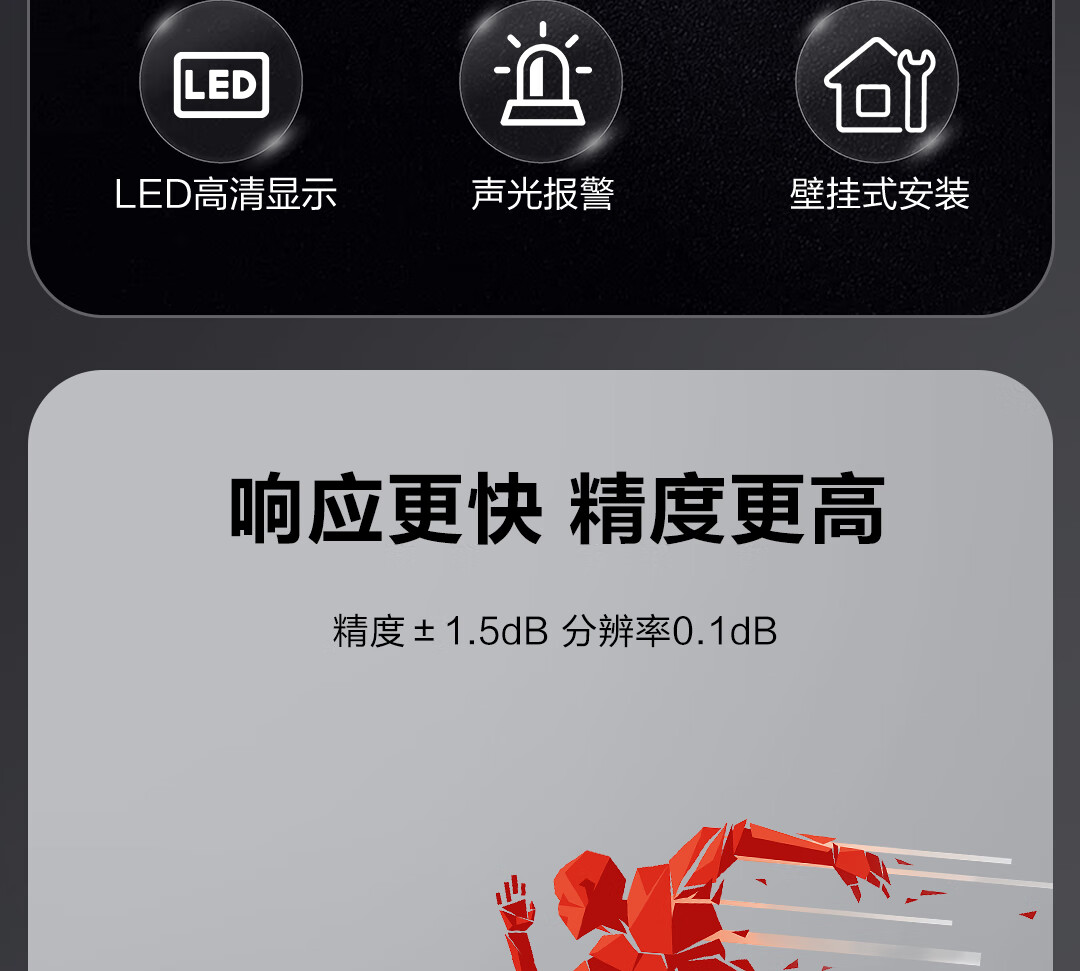 【得力DL333220】得力(deli)壁挂噪音计环境分贝测试仪大屏数显分贝仪声级计30~130dBA