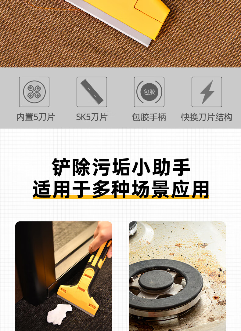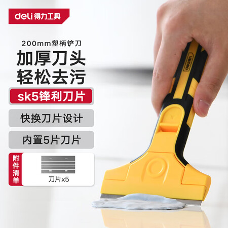 【得力DL4723Z】得力(deli)刮污刀铲刀玻璃刮刀铲墙皮地板美缝瓷砖清洁铲刀刮污神器赠5刀片
