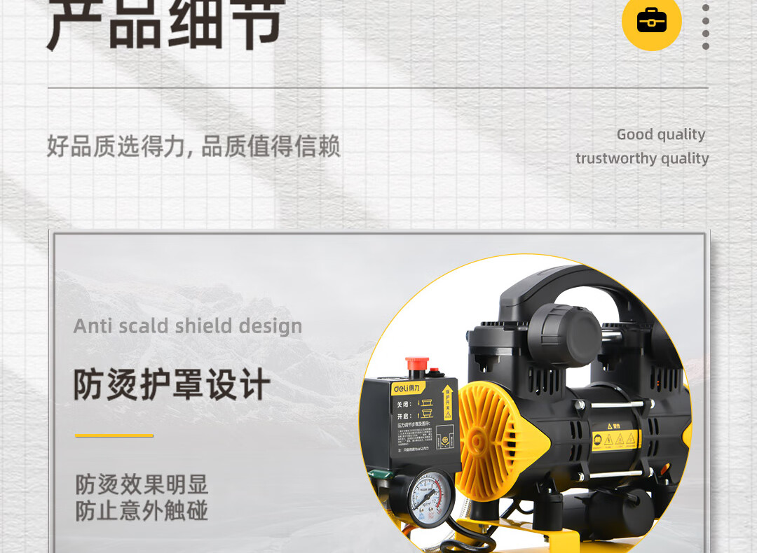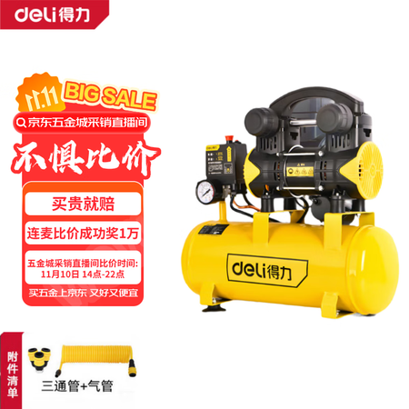 【得力DL-WKY06-W】得力(deli)空压机无油静音压缩机220V小型空气压缩机家用便捷打气泵充气泵