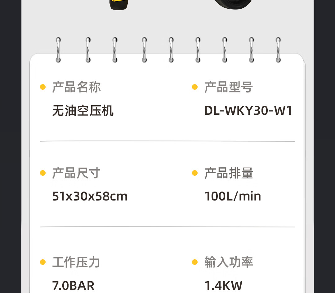 【得力DL-WKY30-W1】得力(deli)空压机低音无油小型空气压缩机家用大功率大型工业级气泵充气泵