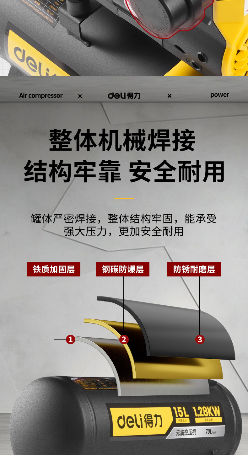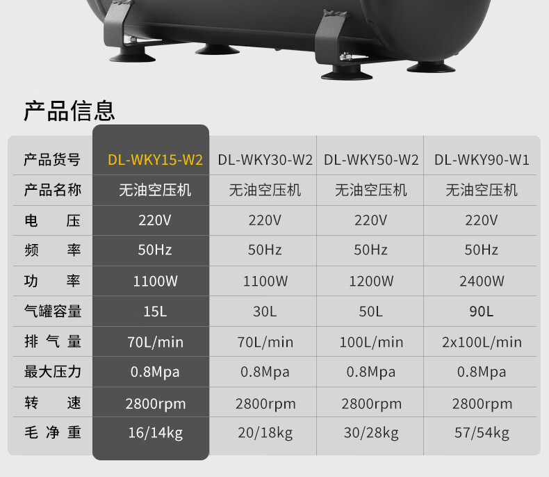 【得力DL-WKY15-W2】得力(deli)空压机220V空气压压缩机15L小型气泵压缩机大功率工业级打气泵