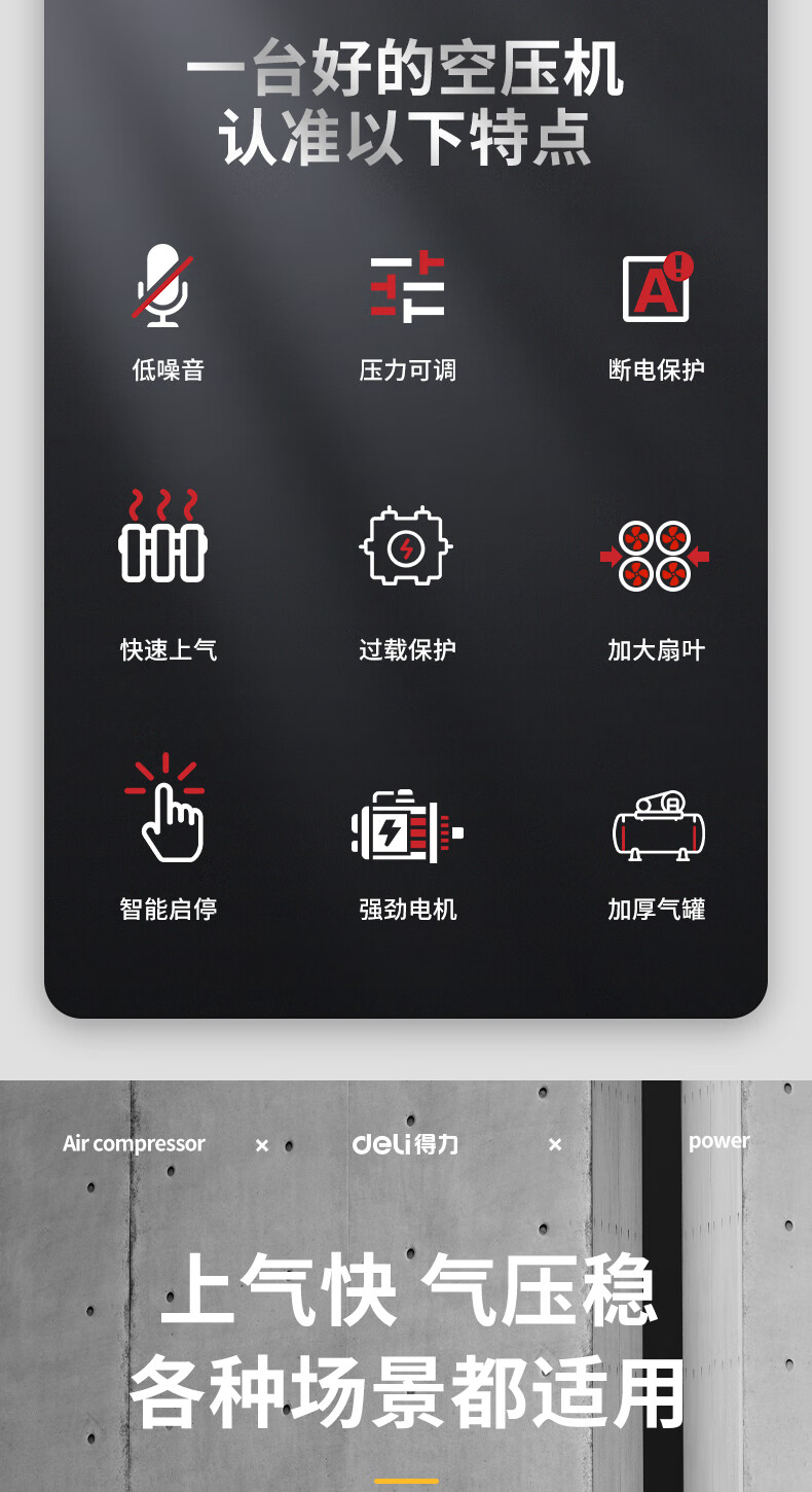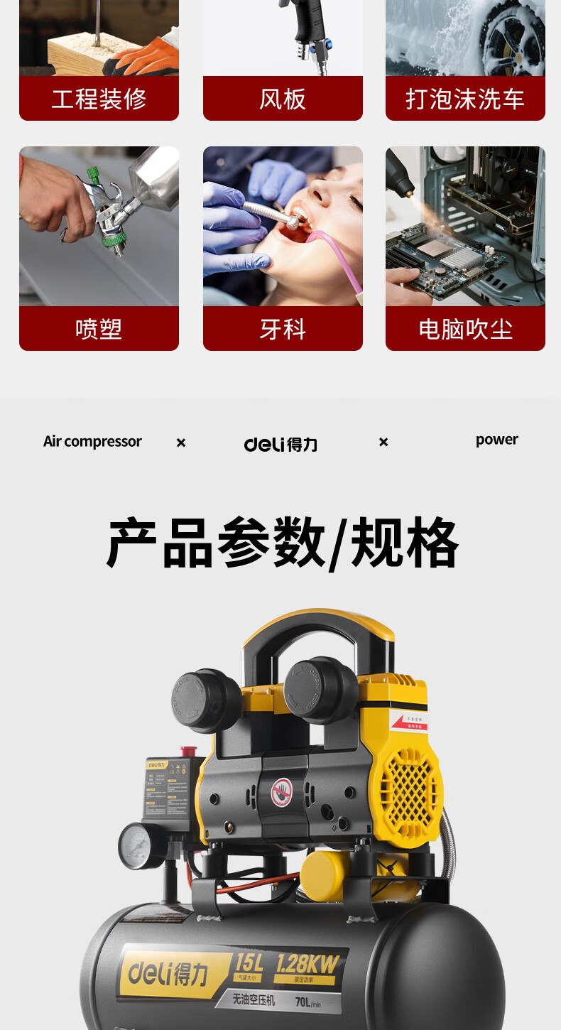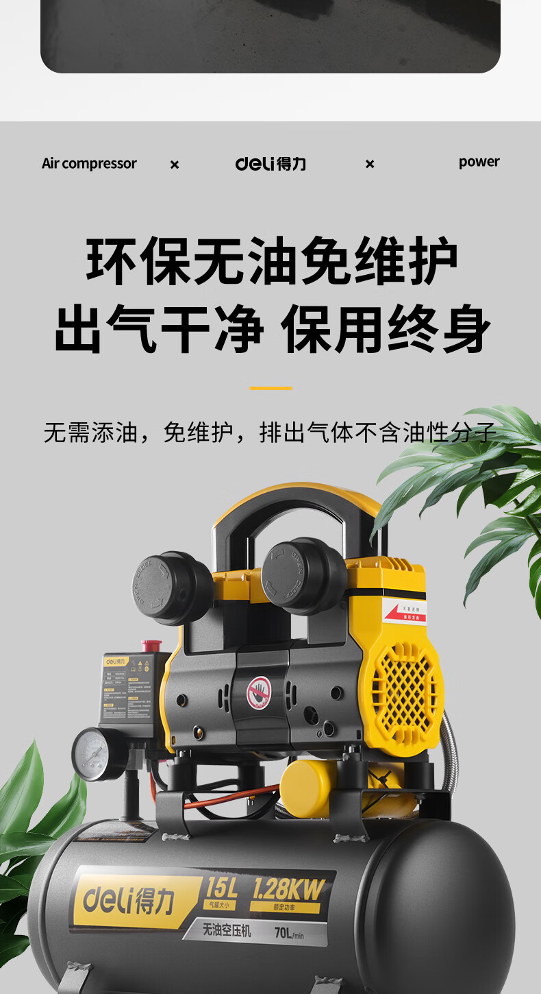 首页 / 工业品 / 五金机电 / 空压机/冲气泵油泵鱼塘泵/增氧泵 / 【得力DL-WKY15-W2】得力(deli)空压机220V空气压压缩机15L小型气泵压缩机大功率工业级打气泵