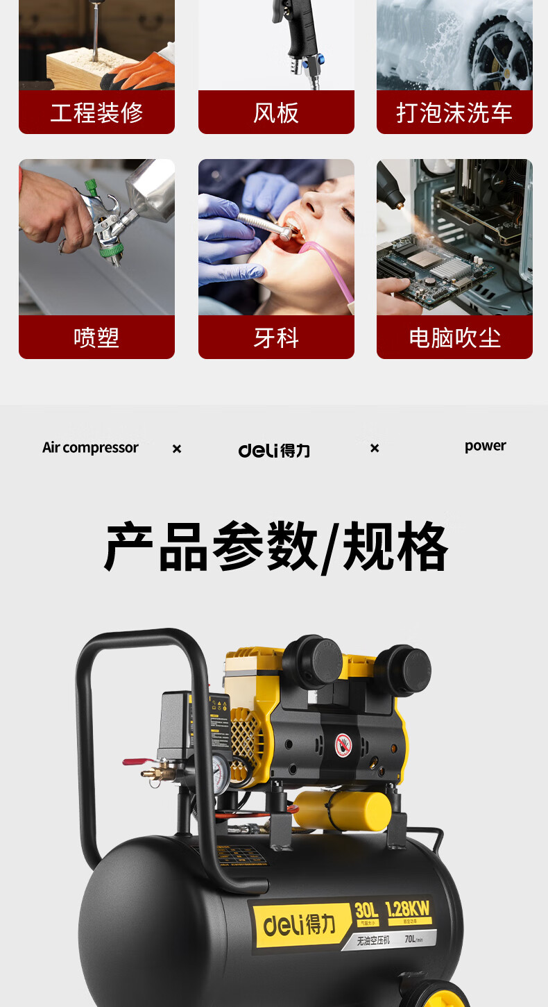 【得力DL-WKY30-W2】得力(deli)空压机220V空气压缩机30L小型气泵压缩机大功率工业级打气泵