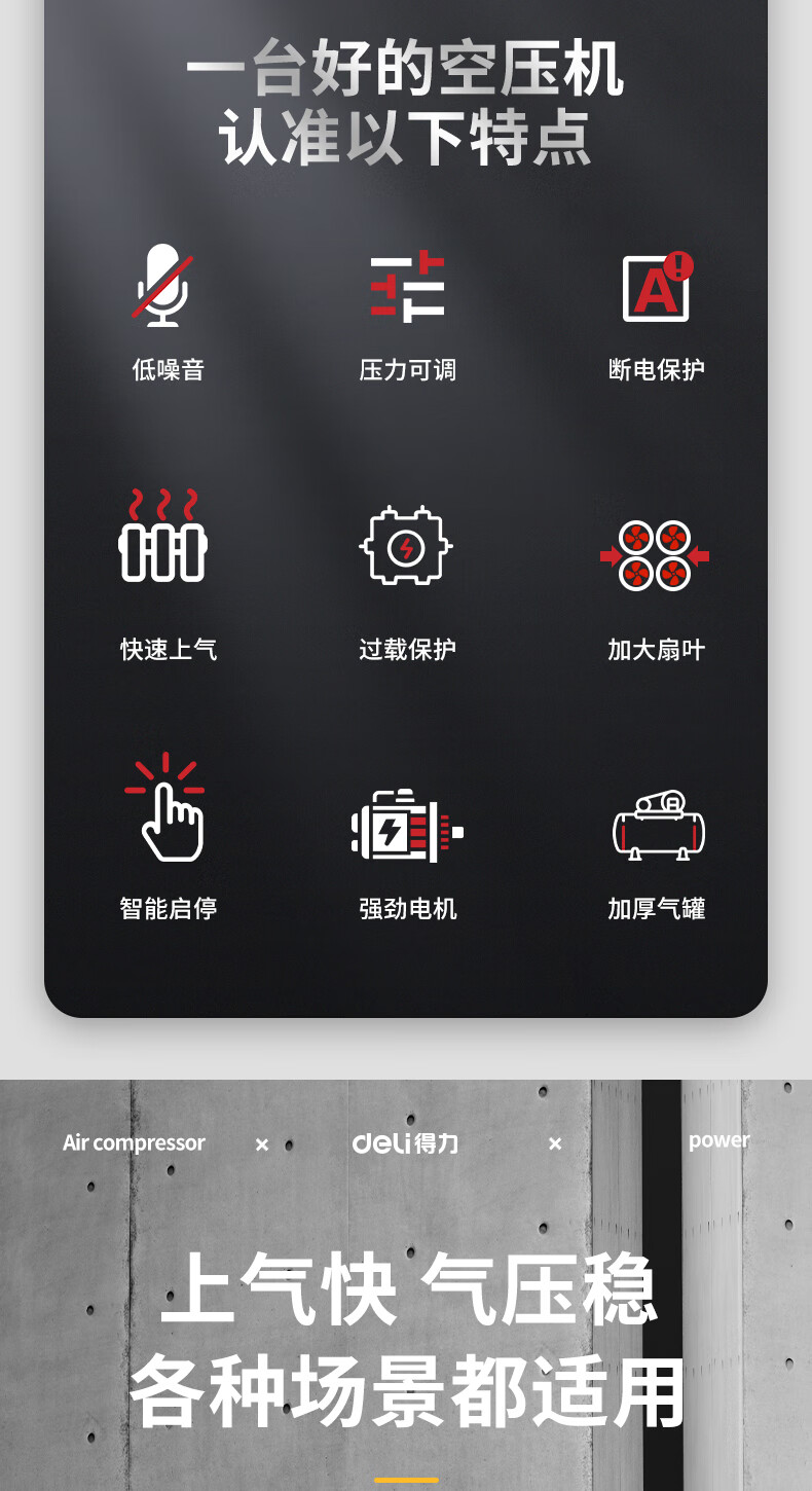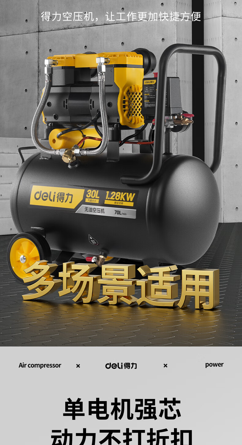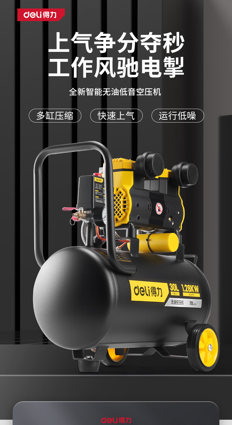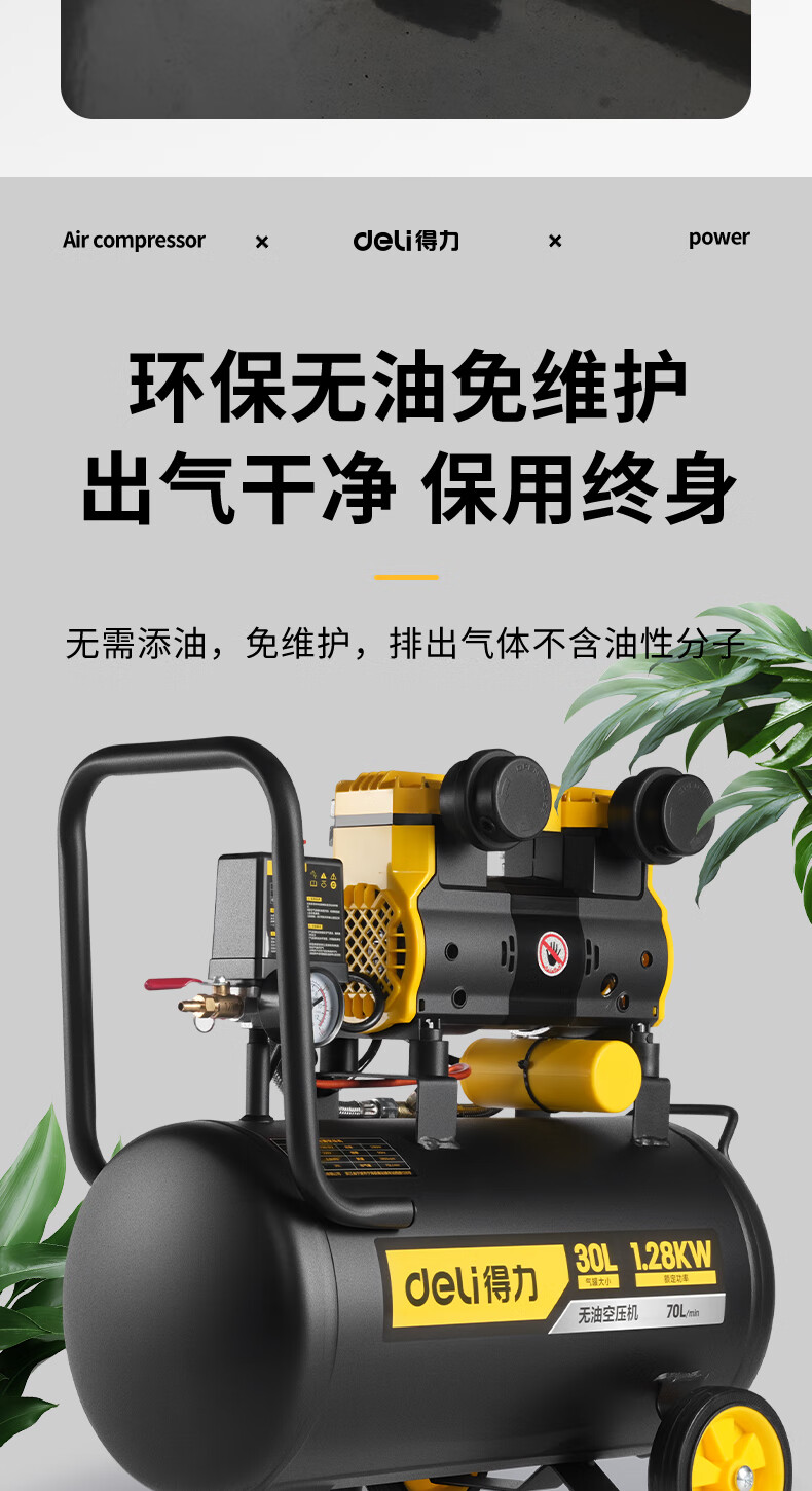 首页 / 工业品 / 五金机电 / 空压机/冲气泵油泵鱼塘泵/增氧泵 / 【得力DL-WKY30-W2】得力(deli)空压机220V空气压缩机30L小型气泵压缩机大功率工业级打气泵