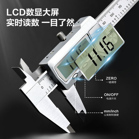 【得力DL91150】得力(deli)游标卡尺全金属高精数显卡尺高清大屏电子卡尺符合国标