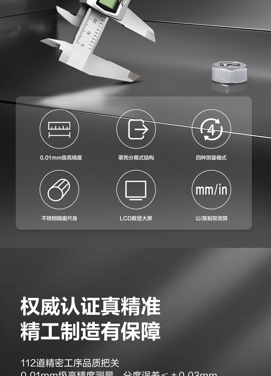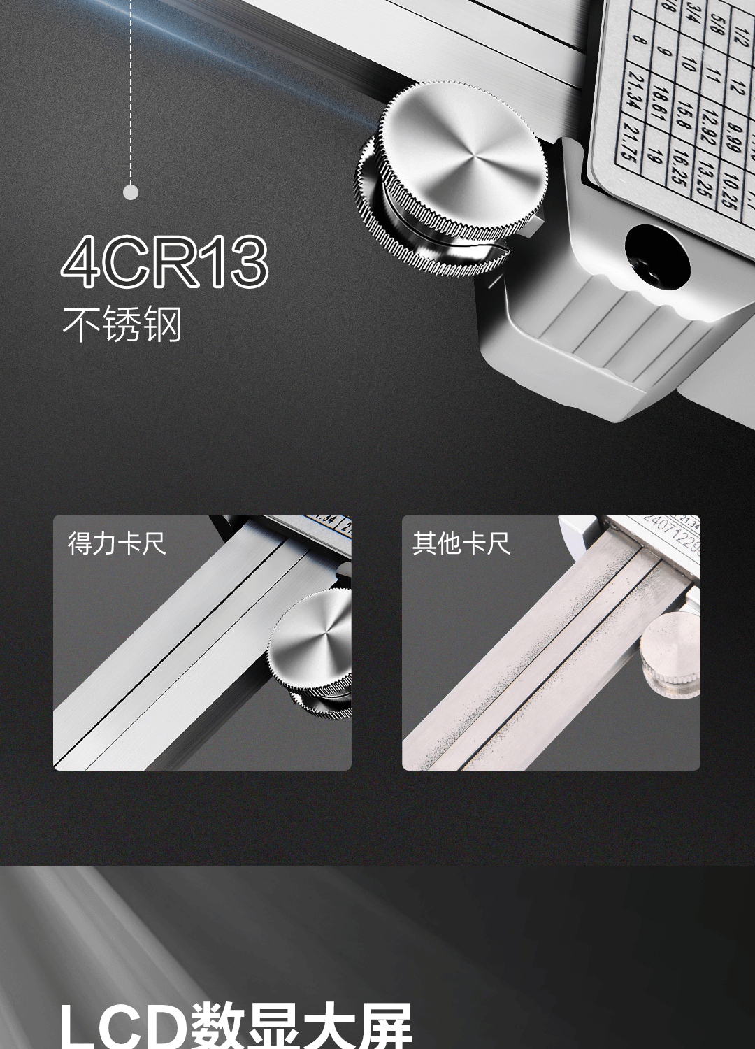 【得力DL91300】得力(deli)游标卡尺全金属高精数显卡尺高清大屏电子卡尺符合国标