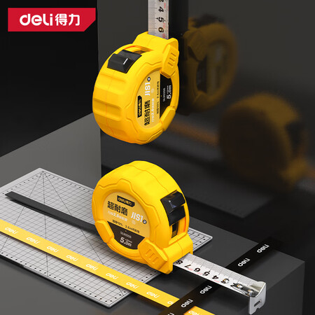 【得力DL9025B】得力(deli)5米钢卷尺盒尺木工尺伸缩尺米尺公制装修25mm宽测量一级精度