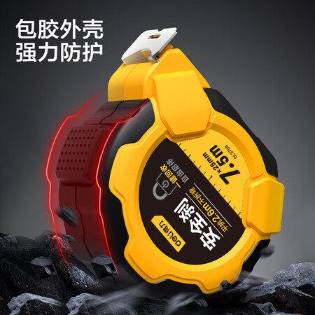 【得力DL3798】得力(deli)包胶自锁钢卷尺盒尺伸缩尺米尺25mm宽工地卷尺防割手木工尺7.5米