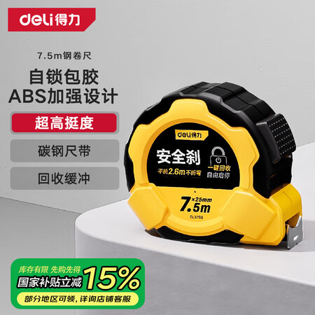 首页 / 仪器仪表 / 测量测绘 / RTK测量仪 / 【得力DL3798】得力(deli)包胶自锁钢卷尺盒尺伸缩尺米尺25mm宽工地卷尺防割手木工尺7.5米