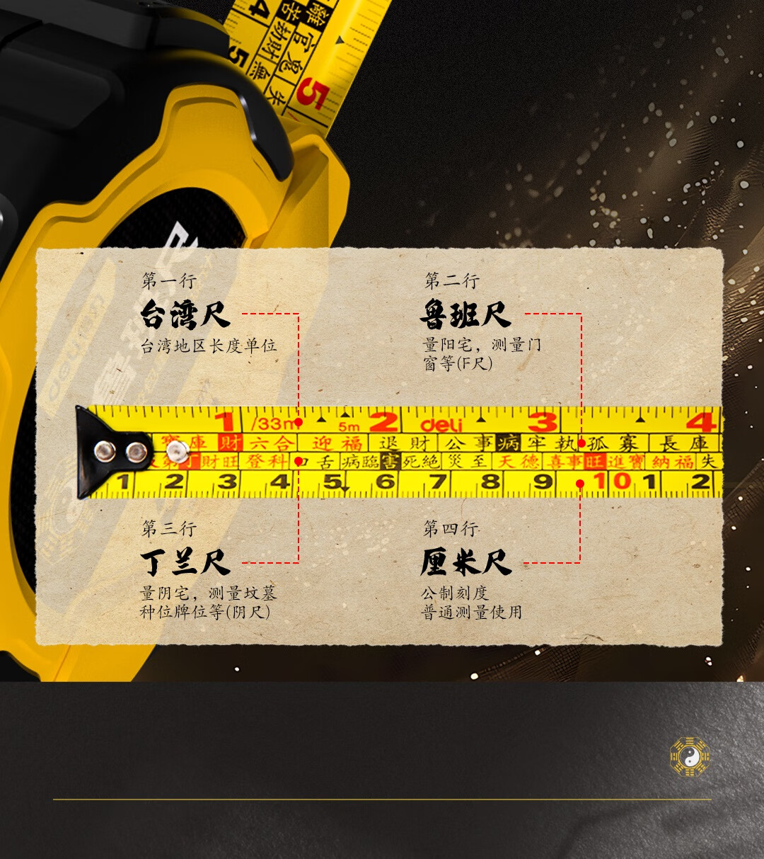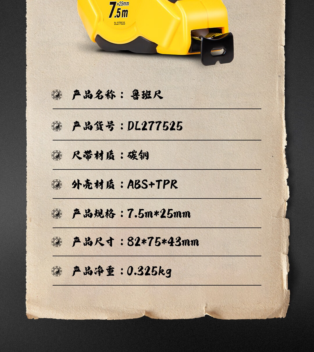 【得力DL277525】得力(deli)7.5米鲁班尺钢卷尺高精度风水尺家用风水测量测量盒尺