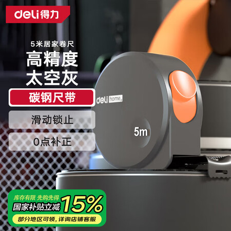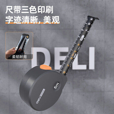 【得力HT8519C】得力(deli)居家卷尺盒尺高颜值办公钢卷尺伸缩尺木工尺子高精度钢尺5m太空灰