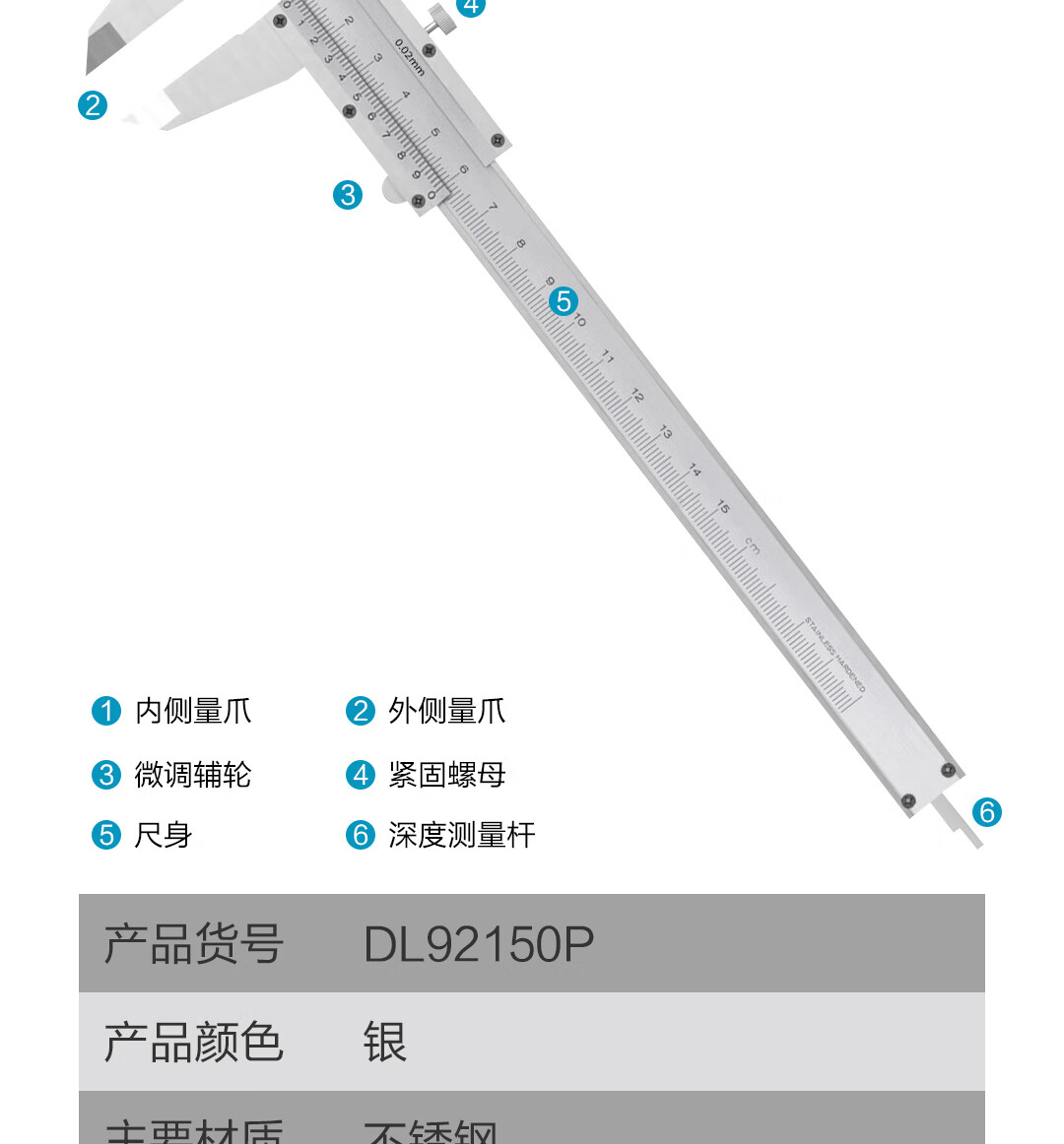 首页 / 仪器仪表 / 测量测绘 / RTK测量仪 / 【得力DL92150P】得力(deli)游标卡尺专业级精密卡尺高精度不锈钢机械符合国标0-150mm
