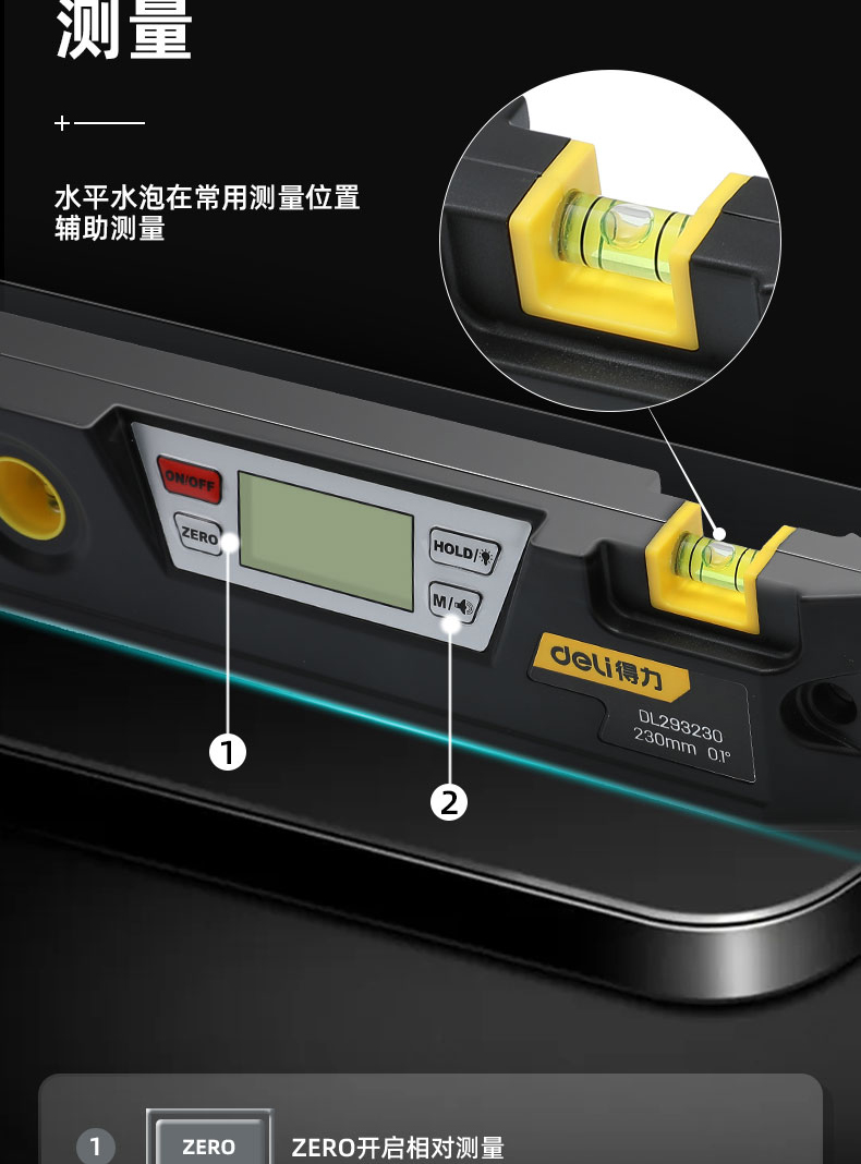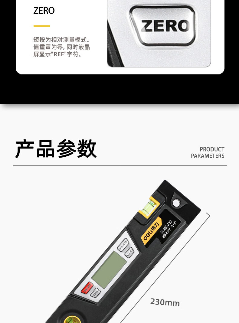 首页 / 仪器仪表 / 测量测绘 / RTK测量仪 / 【得力DL293230】得力(deli)9英寸数显水平尺强磁鱼雷式水平尺水平仪迷你便携230mm
