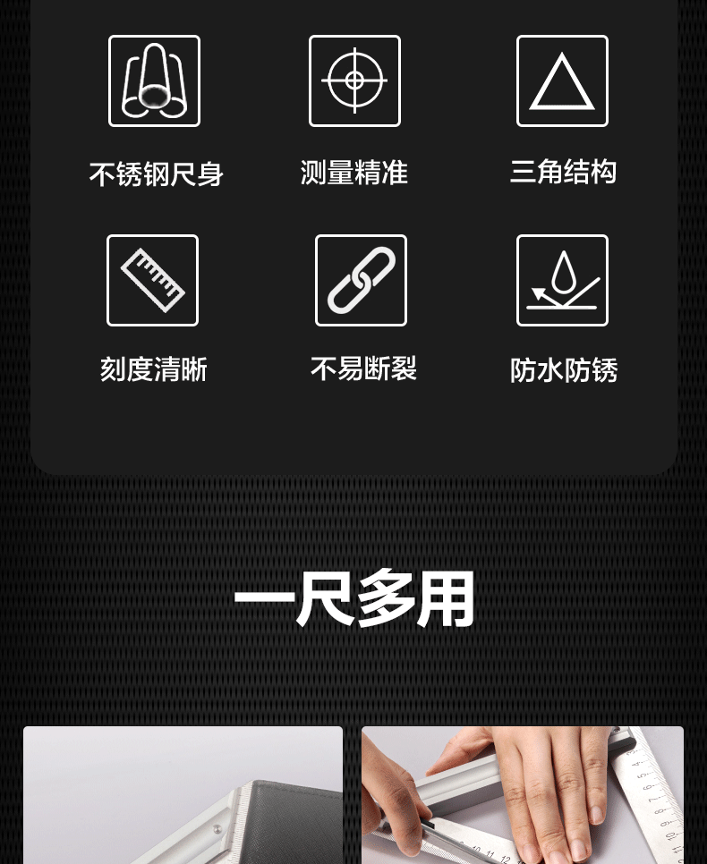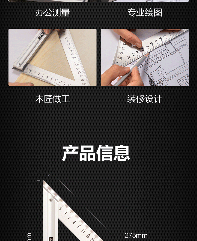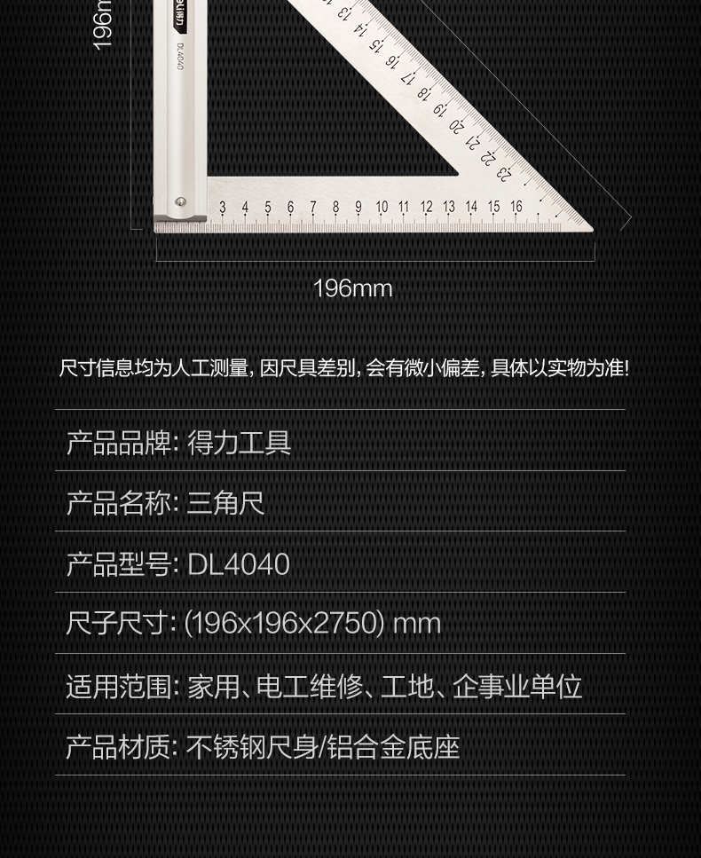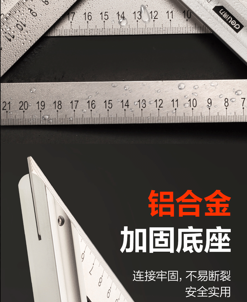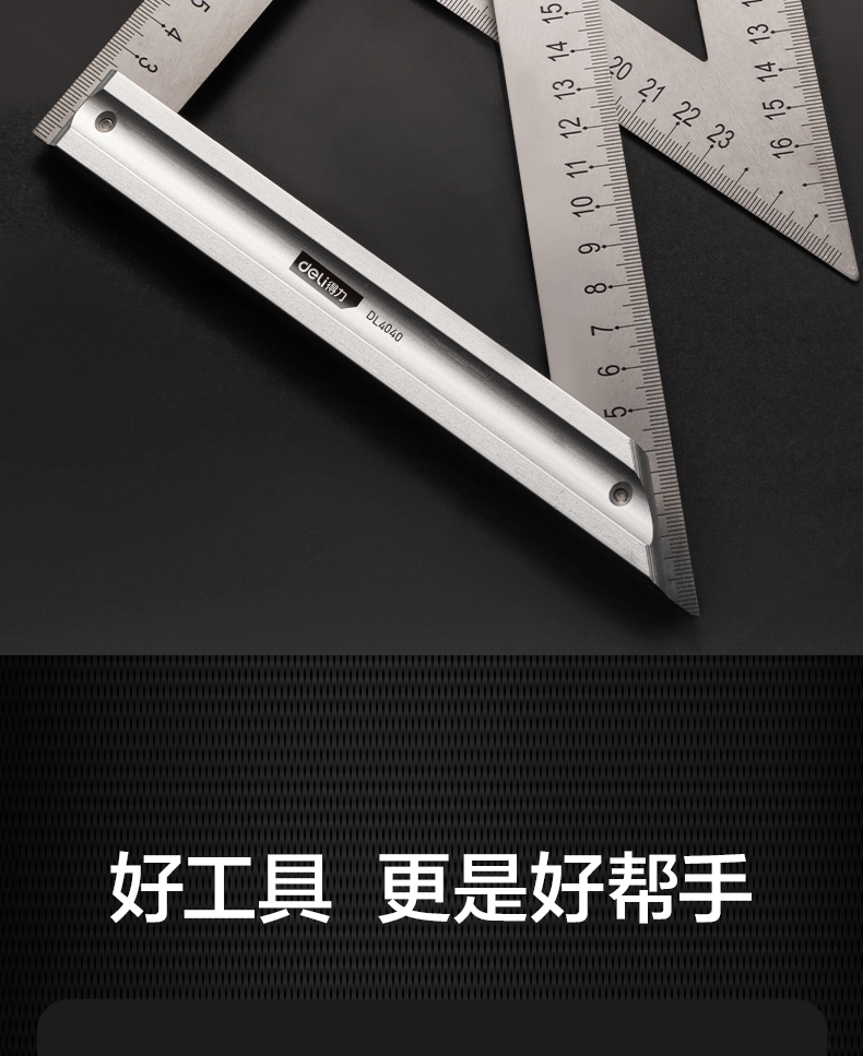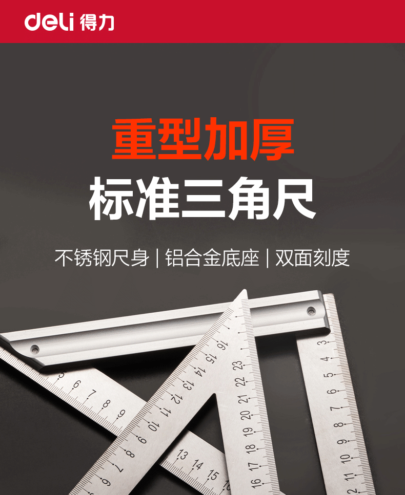 【得力DL7306】得力(deli)不锈钢多功能角度尺圆规角尺半圆180度量角器调整式木工角尺150mm