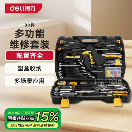 【得力DL5967】得力(deli)家用多功能五金工具箱套装手动工具组套80件汽车维修电工DL5967