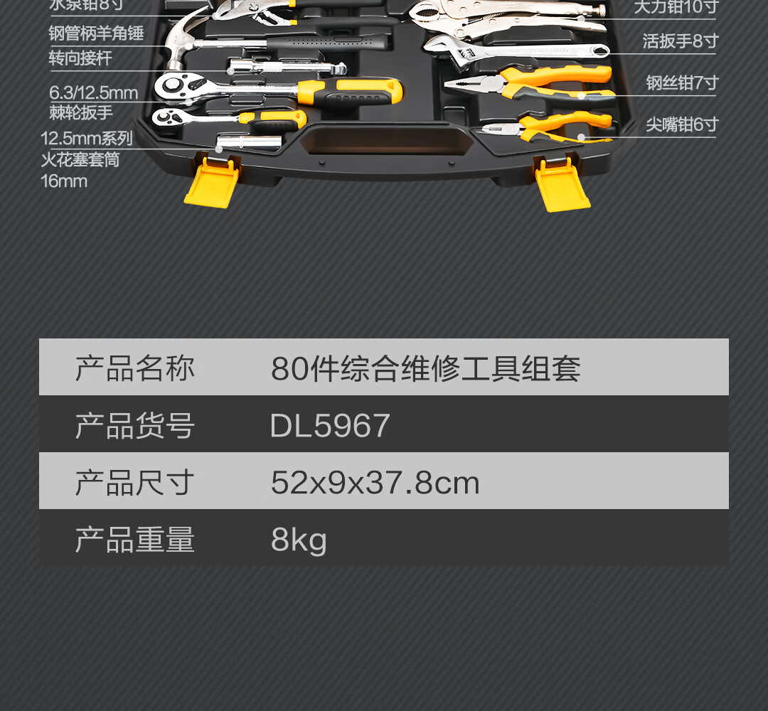 首页 / 手动工具 / 通用手工具 / 工具包/箱/车 / 【得力DL5967】得力(deli)家用多功能五金工具箱套装手动工具组套80件汽车维修电工DL5967