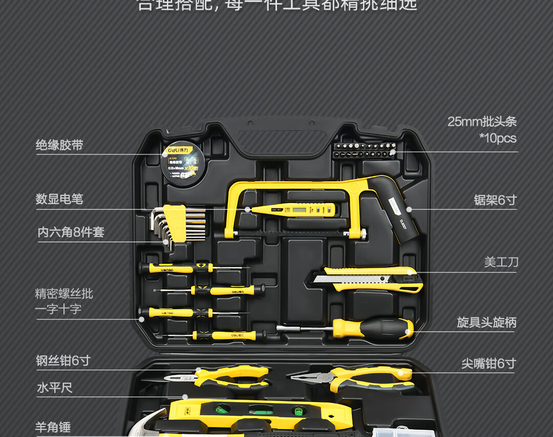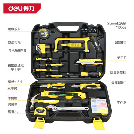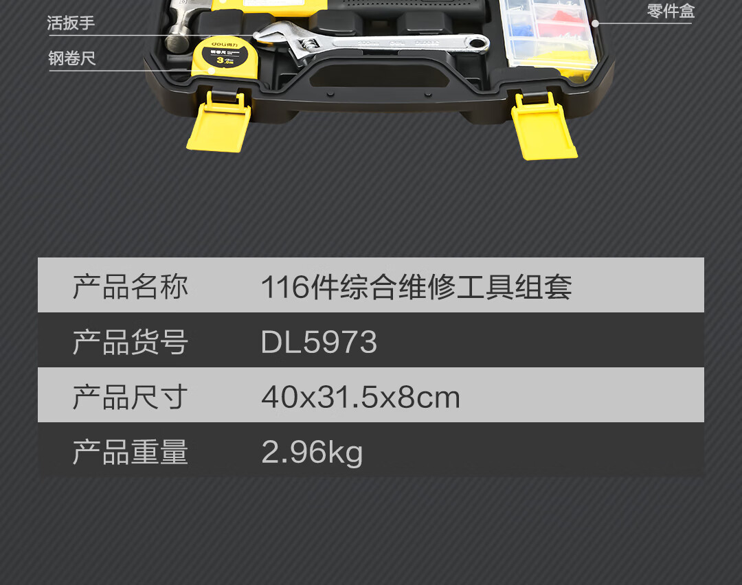 首页 / 手动工具 / 通用手工具 / 工具包/箱/车 / 【得力DL5973】得力(deli)家用工具箱套装电工木工维修五金手动工具组套116件套DL5973