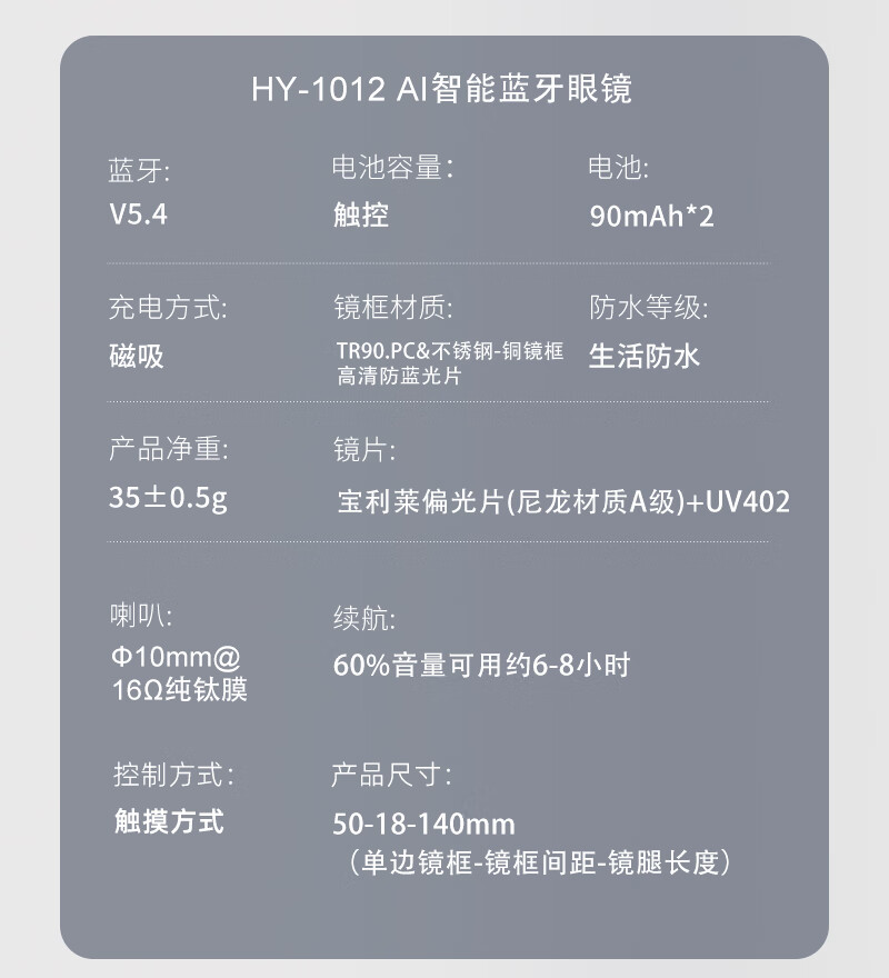 智能眼镜蓝牙通话音乐播放语音唤醒穿戴设备黑白