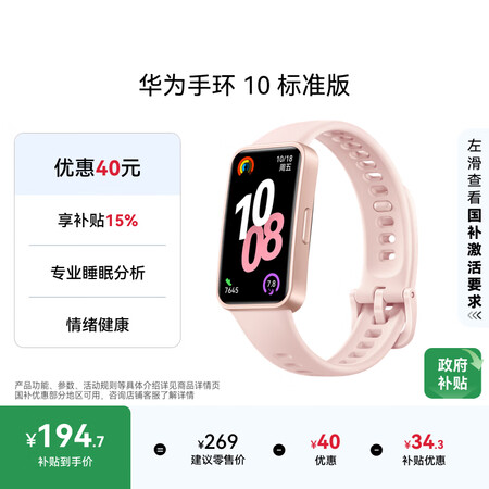 首页 / 智能穿戴 / 电子智能设备 / 智能手环 / 【华为手环10标准版】华为(HUAWEI)手环10标准版拂晓粉智能手环专业睡眠分析情绪健康心率监测运动手环华为手环9升级