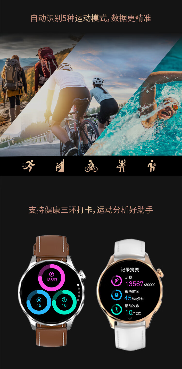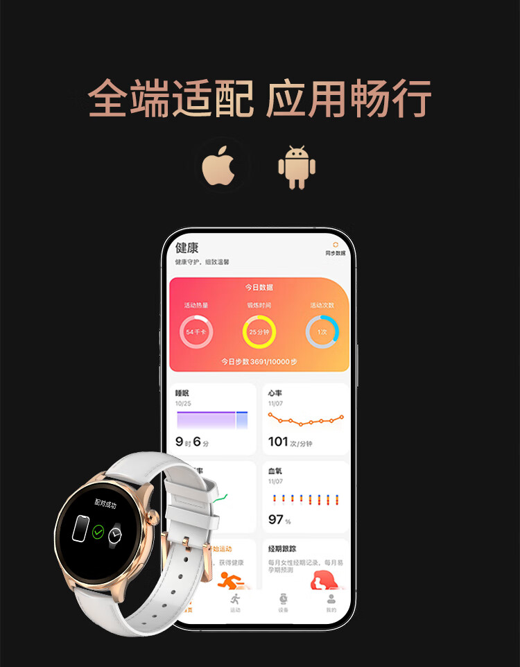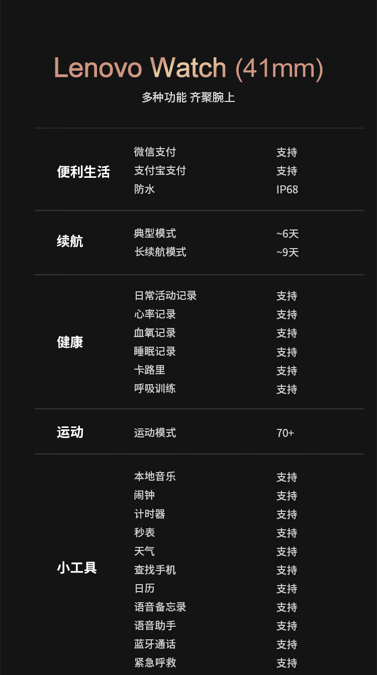 【联想L-SWAW102】联想(Lenovo)Watch41mm曜石金智能运动手表蓝牙心率血氧监测70种运动模式音乐播放七夕情人节女朋友礼物