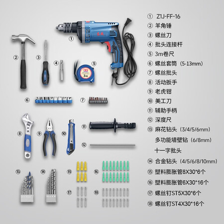 首页 / 动力工具 / 电动/气动工具 / 钻孔类 / 【东成Z1J-FF-16T】东成710W冲击钻Z1J-FF-16T家用手电钻有线电动工具箱多功能套装
