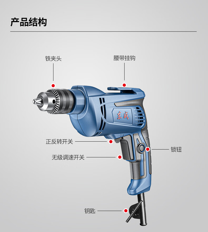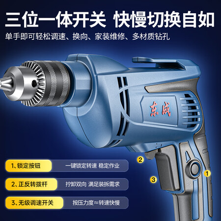 【东成J1Z-FF06-13】东成手电钻家用手枪钻打孔电动工具有线电动螺丝刀J1Z-FF06-13