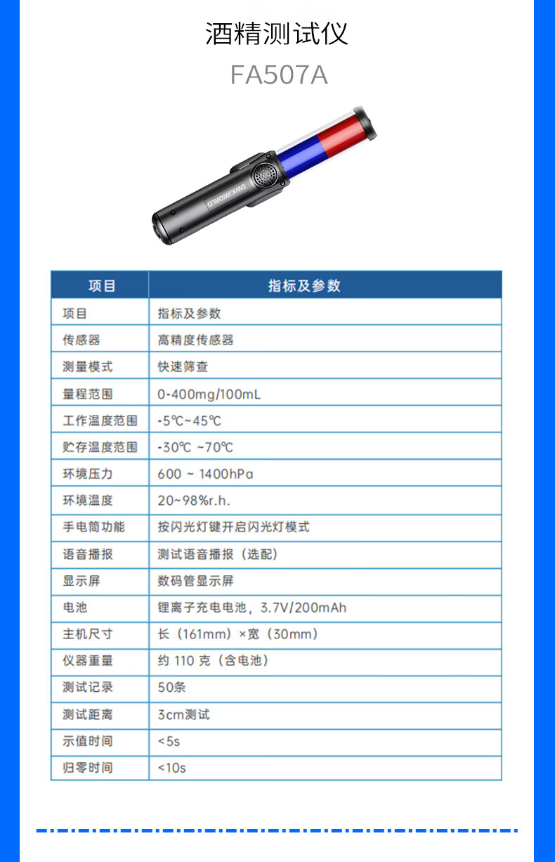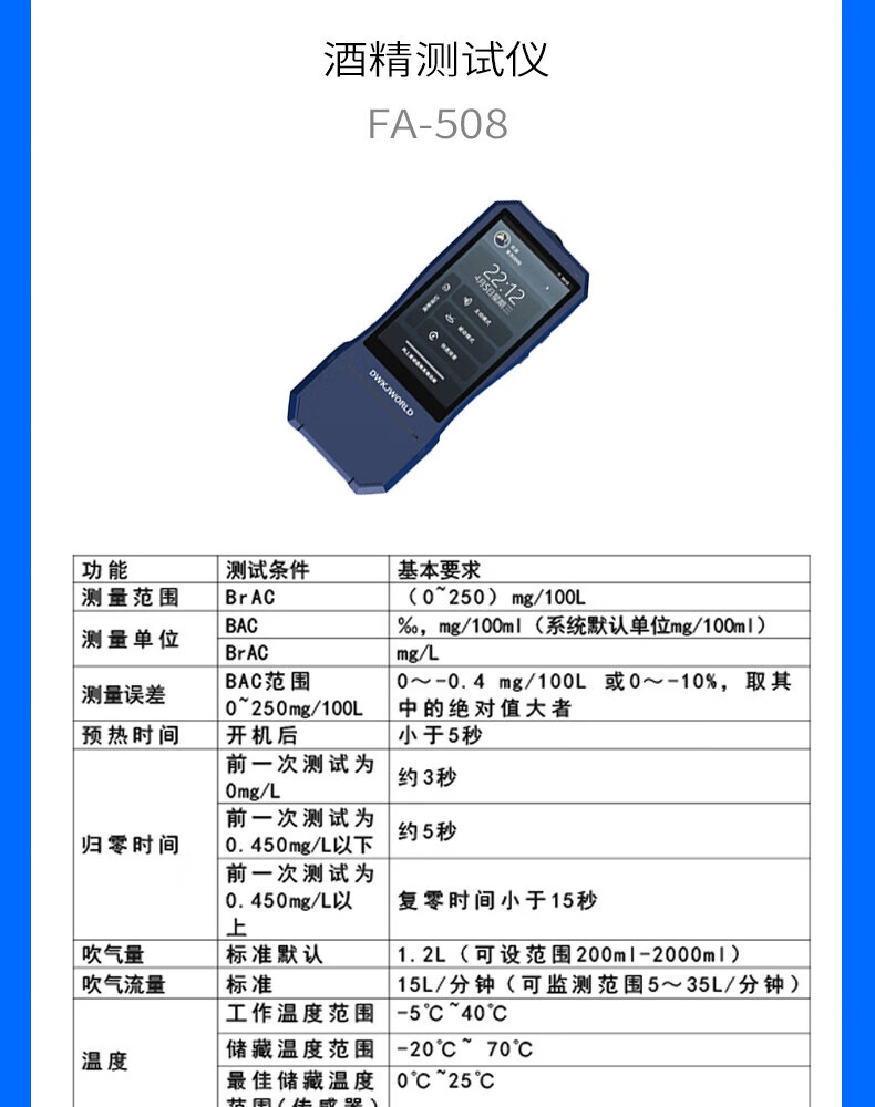 DWKJWORLD酒精测试仪FA507A