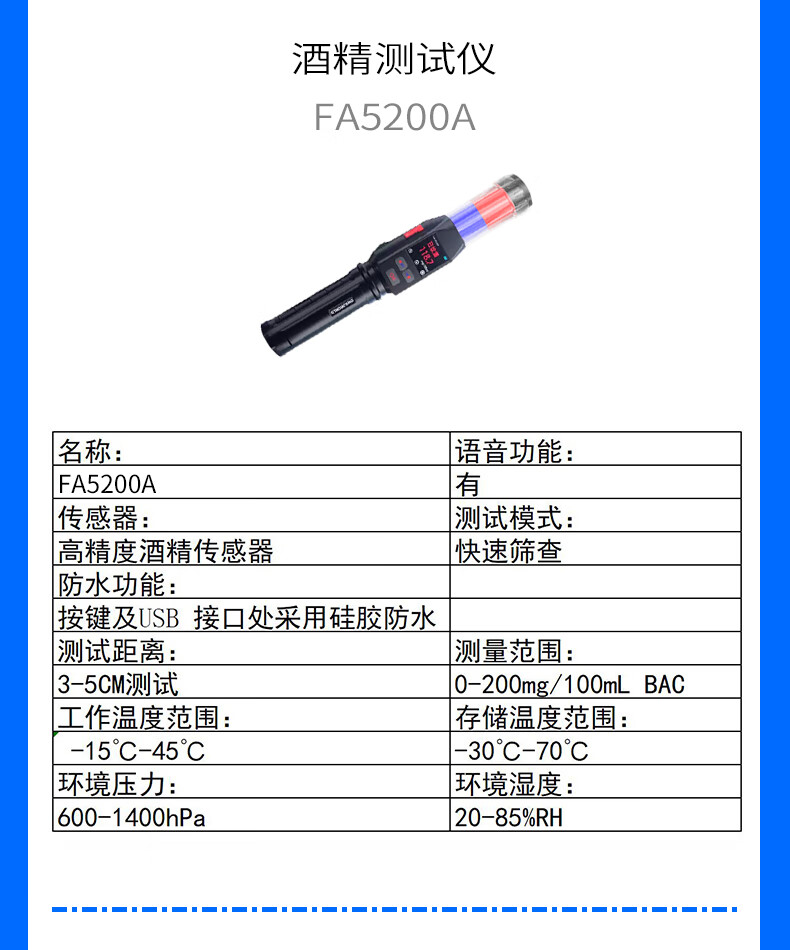DWKJWORLD酒精测试仪FA5200A