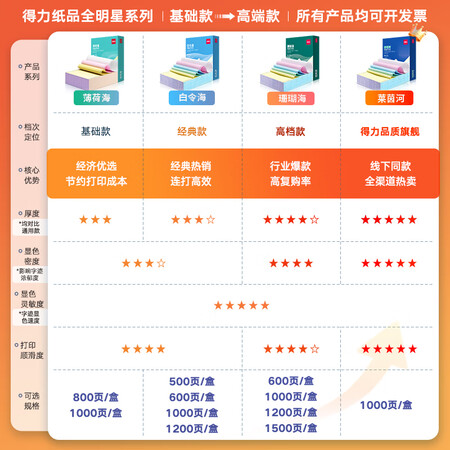 首页 / 办公用品 / 办公文具 / 办公用纸类 / 【得力(deli)JS241-3-1/2C】得力(deli)【缺页十倍赔】珊瑚海三联二等分不撕边针式电脑打印纸彩色(白红黄)送货单1500页JS241-3-1/2C