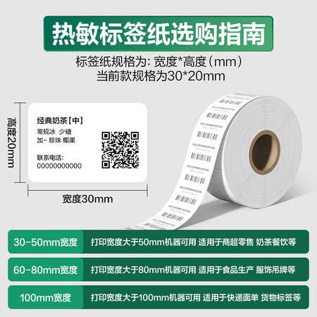 【得力12005】得力(deli)珊瑚海30*20mm1800张*4卷三防热敏标签打印纸奶茶服饰电子秤条码纸不干胶打印纸12005