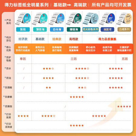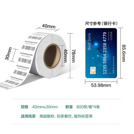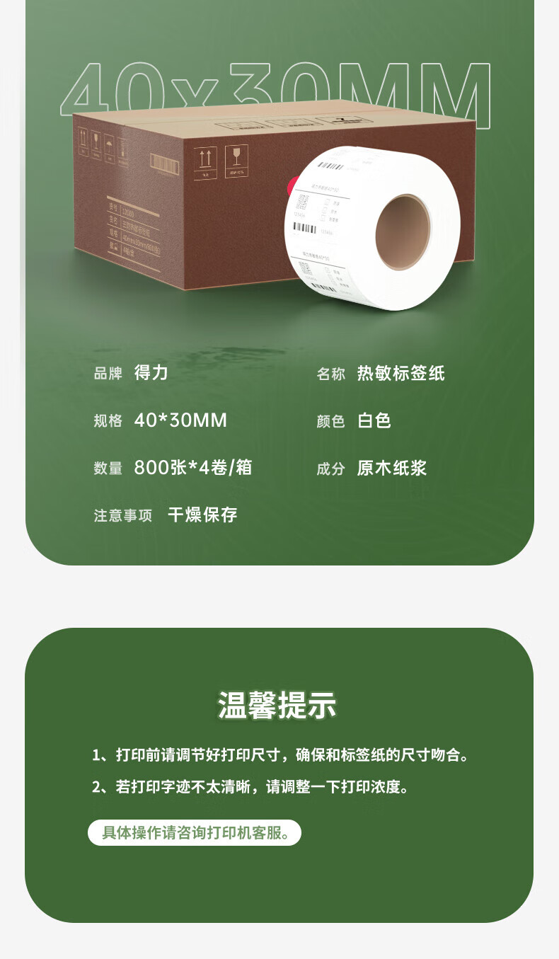 【得力12000】得力(deli)40*30mm800张*4卷珊瑚海三防热敏标签纸奶茶服饰不干胶打印纸12000【适配3寸标签机720C等】