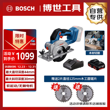 【博世GKS18V-44双电+2个锯片】博世(BOSCH)电锯木工专用电圆锯锯木头18V锂电无刷电机GKS18V-44双电+2个锯片