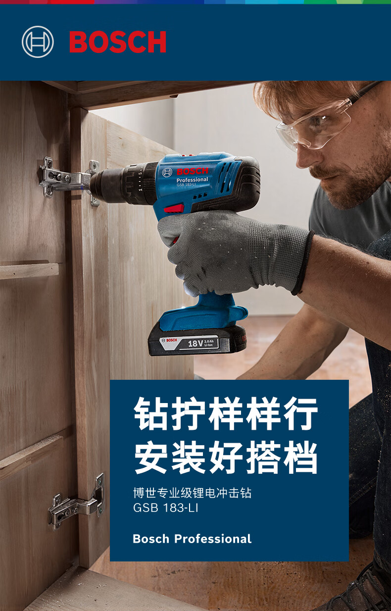 【博世GSB183双电】博世(BOSCH)18V锂电冲击钻充电式手电钻电动螺丝刀起子机GSB183-LI双电