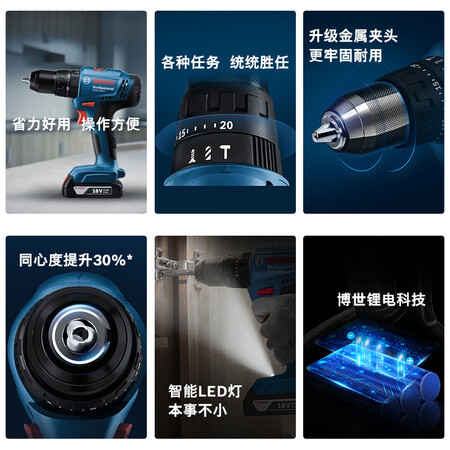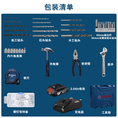 【博世GSB183多功能钻孔套装】博世(BOSCH)锂电冲击钻起子机多功能钻孔套装GSB183-Li