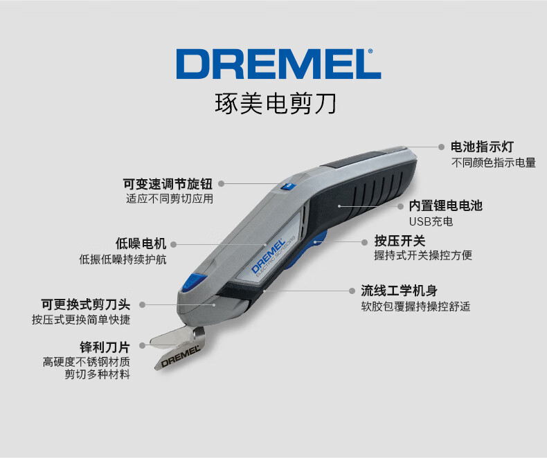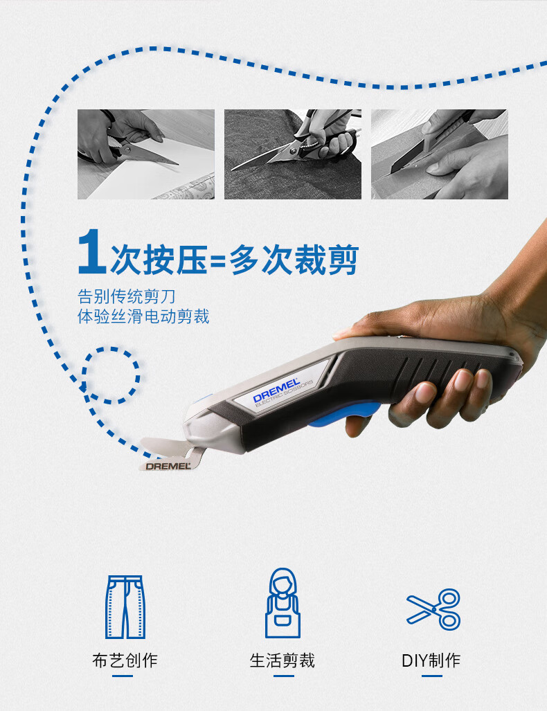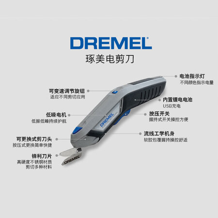 【琢美电动剪刀】琢美(DREMEL)锂电电动剪刀裁剪纸张纸板布料皮革