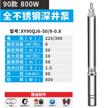 【派普硕6-10方50-58米9叶0.8千瓦220v18】派普硕不锈钢深井泵380v潜n水泵高扬程500米三相220v大流量抽水泵多级泵