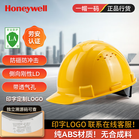 【霍尼韦尔安全帽H99ABS】霍尼韦尔(Honeywell)安全帽H99S纯ABS材质工地防砸抗冲击有透气孔黄色1顶厂家发货可定制印字
