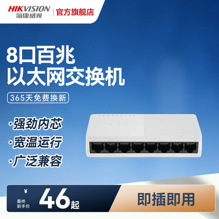 首页 / 通讯数码 / 网络产品 / 交换机 / 海康威视精美塑壳交换机经济型即插即用线速转发无阻塞DS-XS00(G)DDS-XS08D【8个百兆电口】塑壳