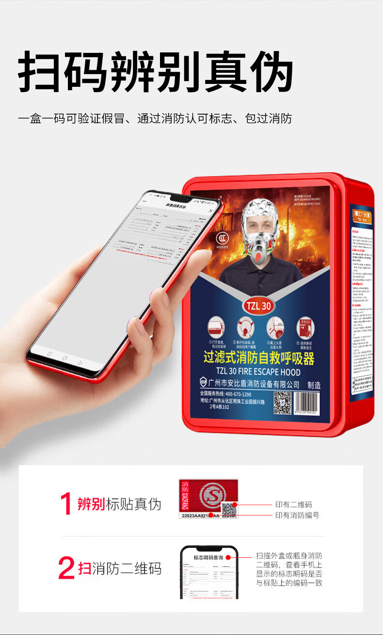【准航yeguang】准航防毒面具消防面具逃生防烟面罩自救呼吸器TZL30升级款