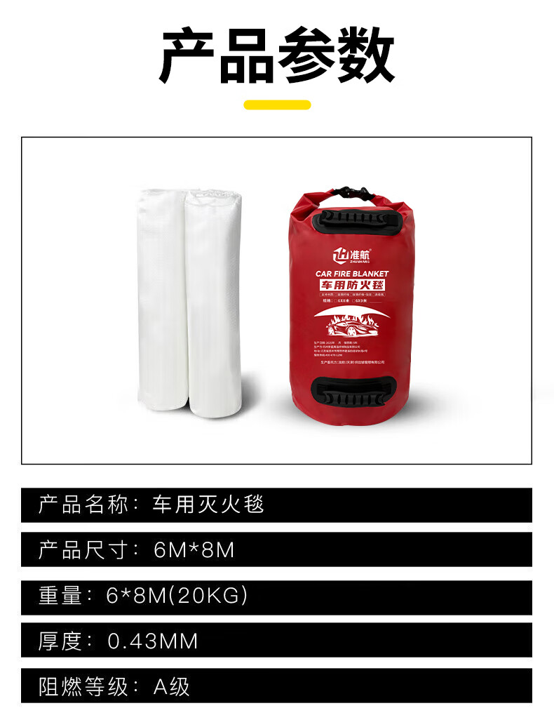 首页 / 消防应急 / 消防设备 / 消防个人装备 / 【准航JTCG-0744】准航玻璃纤维灭火毯6*8米汽车车用防火毯新能源电车停车场防爆灭火