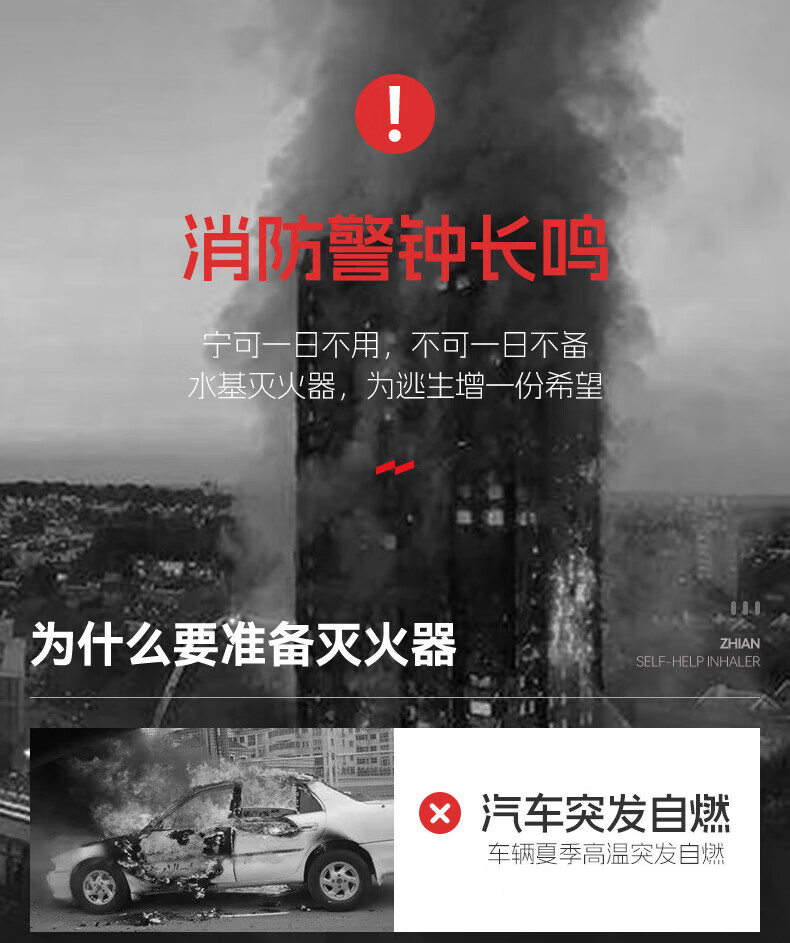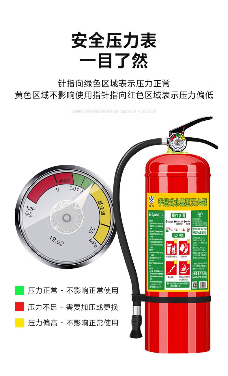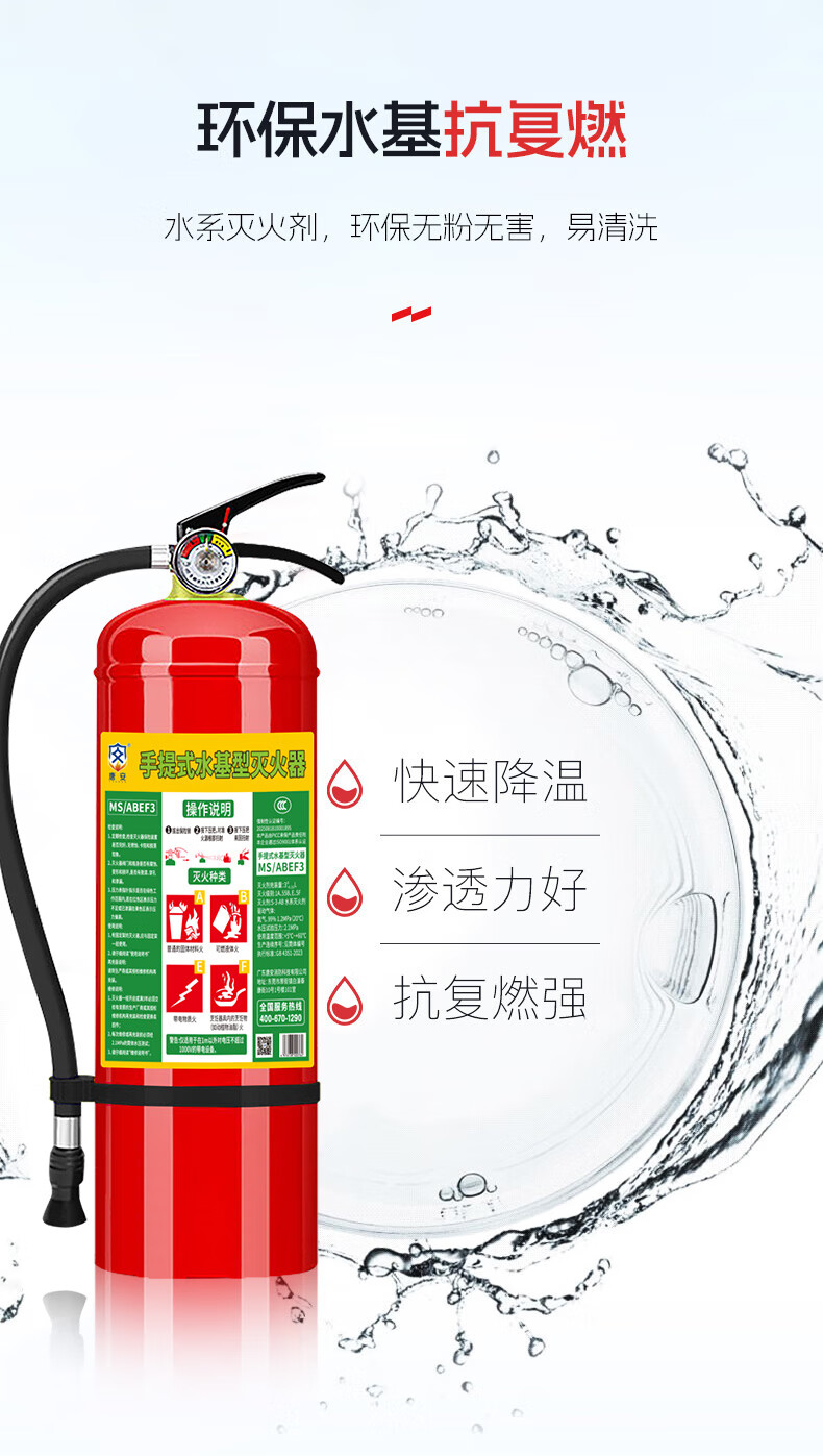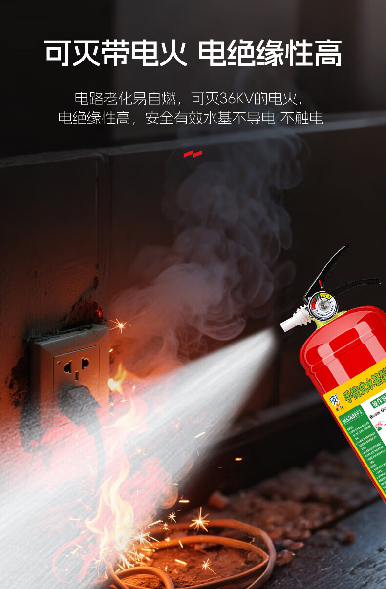 【准航灭火器】唐安水基型灭火器家用商用可灭电火车载环保水基灭水器3LMSZ/3W