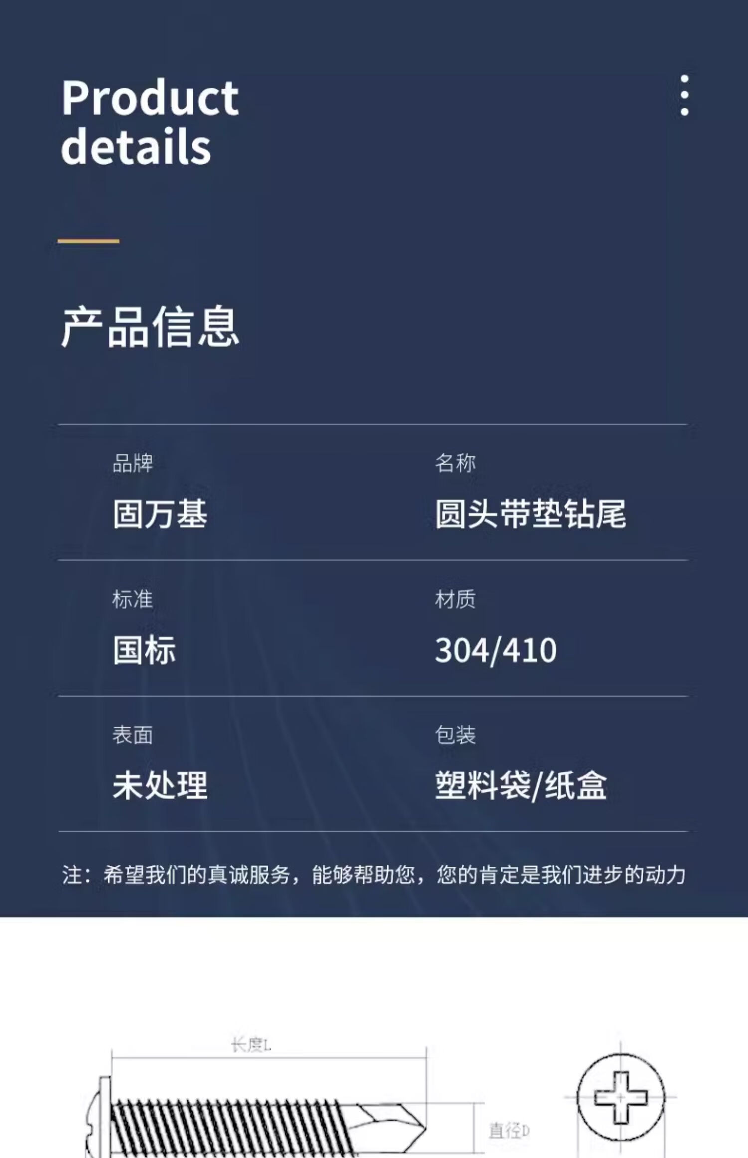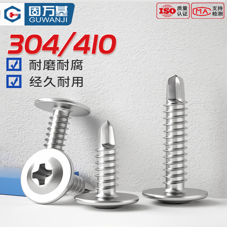 首页 / 备品备件 / 五金配件 / 紧固配件 / 【固万基304/410不锈钢十字圆头华司钻尾螺丝M4.2M4.8】固万基(GUWANJI)十字槽盘头带垫自钻自攻螺钉不锈钢圆头华司钻尾螺丝燕尾螺丝钉410不锈钢M4.2x19[100个]