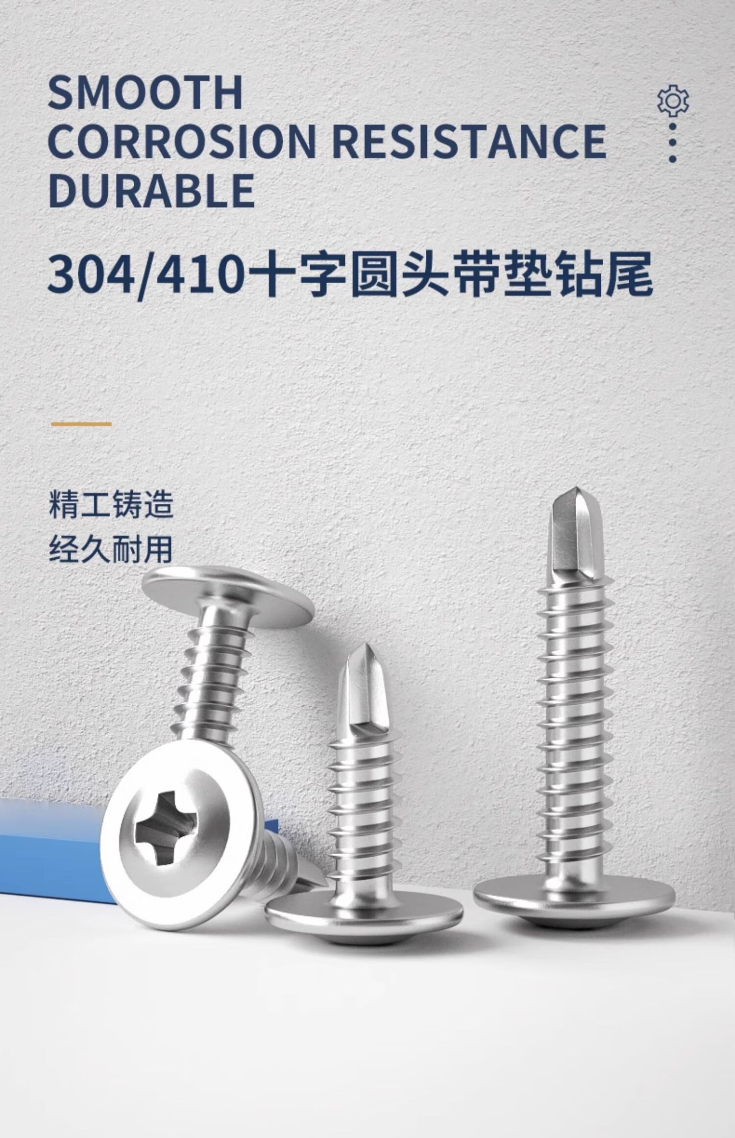 【固万基304/410不锈钢十字圆头华司钻尾螺丝M4.2M4.8】固万基(GUWANJI)十字槽盘头带垫自钻自攻螺钉不锈钢圆头华司钻尾螺丝燕尾螺丝钉410不锈钢M4.2x19[100个]