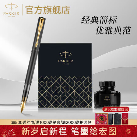 首页 / 礼品福利 / 礼品 / 礼品文具 / 派克(PARKER)钢笔墨水笔高端成人练字商务签字笔送礼定制刻字礼盒大墨水办公练字轻奢礼物升学上岸礼物热门商品威雅幻夜黑金夹墨水笔+大墨水礼盒(加量升级)