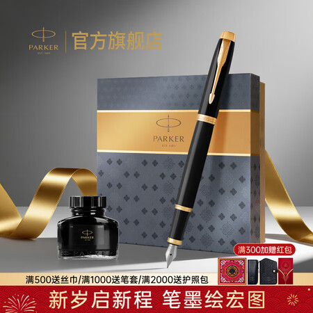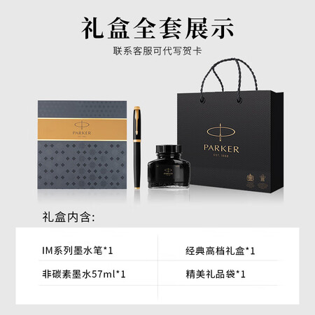 派克(PARKER)生日礼物钢笔墨水笔高端成人礼盒商务定制刻字男女礼品文具签字礼赠轻奢礼纪念品升学上岸礼物IM纯黑丽雅金夹墨水笔+大墨水礼盒