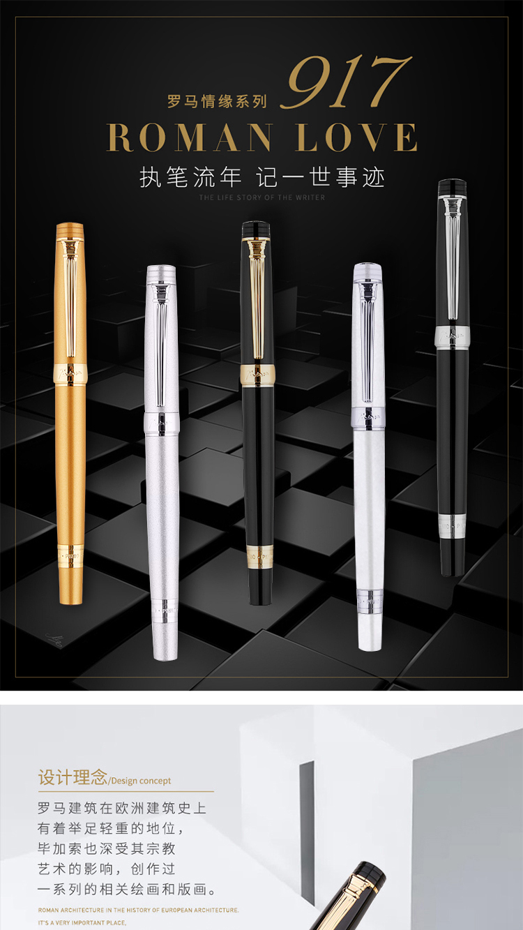 首页 / 企业定制 / 商务定制 / 办公定制 / 【毕加索钢笔ps-917】毕加索(pimio)钢笔签字笔商务高端新年礼物男礼品伴手礼成人办公墨水笔罗马情缘系列917纯黑金夹