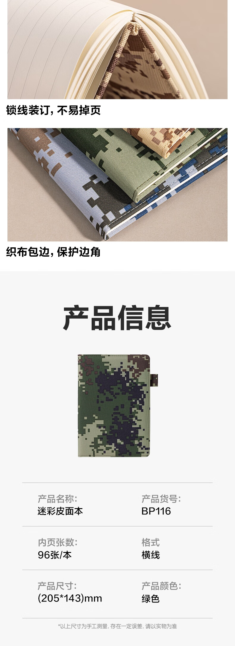 首页 / 企业定制 / 商务定制 / 办公定制 / 【得力(deli)BP116】得力A5迷彩皮面本日记本子随身记事本户外训练教育理论学习记录本兵哥哥礼物96张BP116绿色