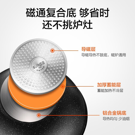 苏泊尔(SUPOR)炒锅麦饭石色不粘锅平底煎锅无油烟炒菜锅具电磁炉燃气灶通用EC30SP02直径(适用2-4人)30cm
