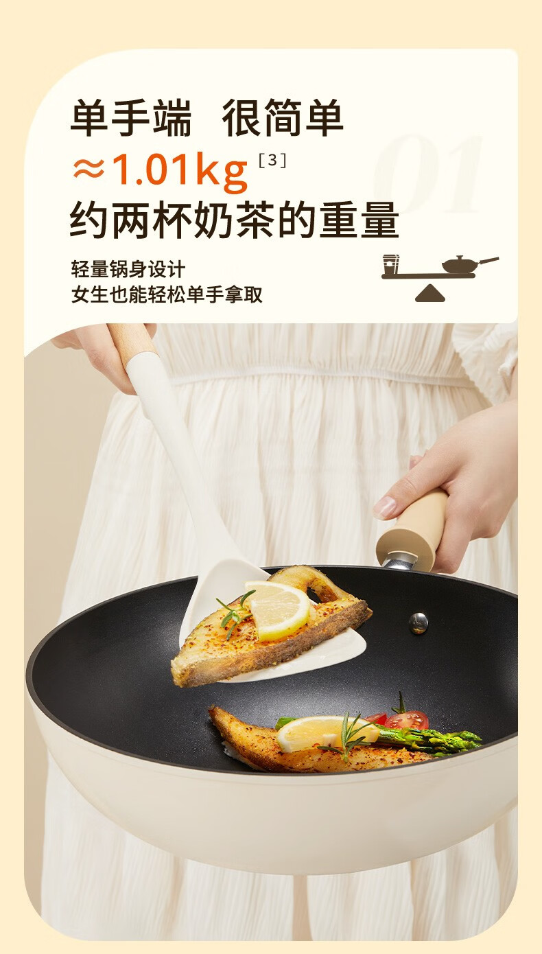 苏泊尔(SUPOR)不粘锅炒锅轻量火红点平底煎炒锅炒菜锅少油烟锅具燃气电磁炉通用不粘煎炒锅适用1-4人直径28cm